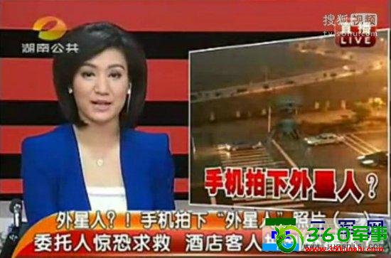 主持人:2012年12月17日晚上7点多,长沙的陈女士打来电话说她工作的酒店有一位顾客用手机拍到了疑似外星人物体,还有照片为证,我们一起来看看这些神秘的照片。