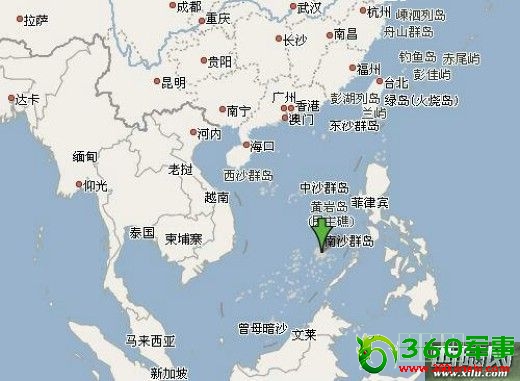 黄岩岛地理位置图(图中绿色箭头指向)
