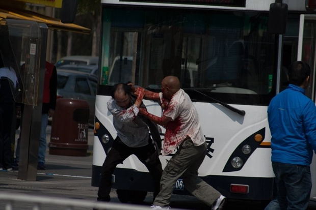 深圳晚报讯 (记者 颜昭雄) 2月23日,有网友在深圳论坛发帖,称在深圳图书馆旁书城广场看到两男子在“移动警务室”前打架,图片显示,一人浑身是血。
