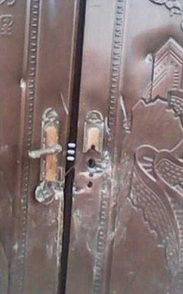 图为网曝事发现场,门锁被砸坏。
