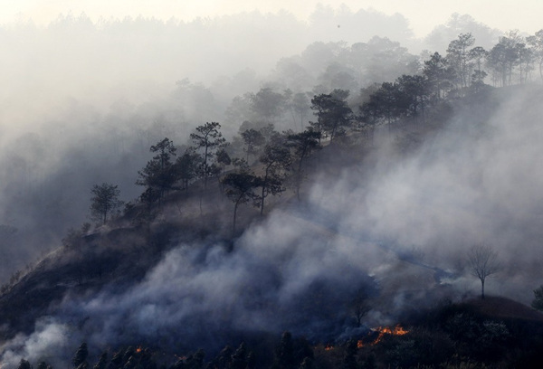 云南昆明宜良县发生森林火灾(1)(2)