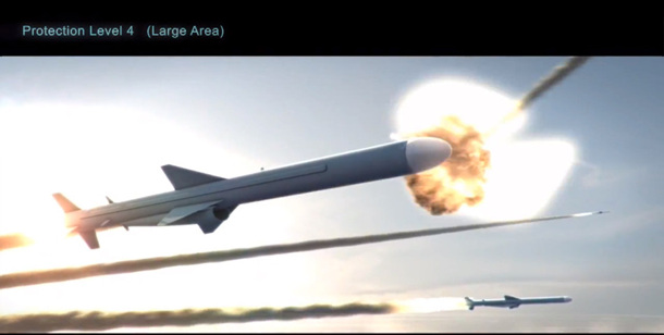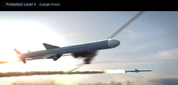 反舰导弹攻击群被防空导弹依次击中。