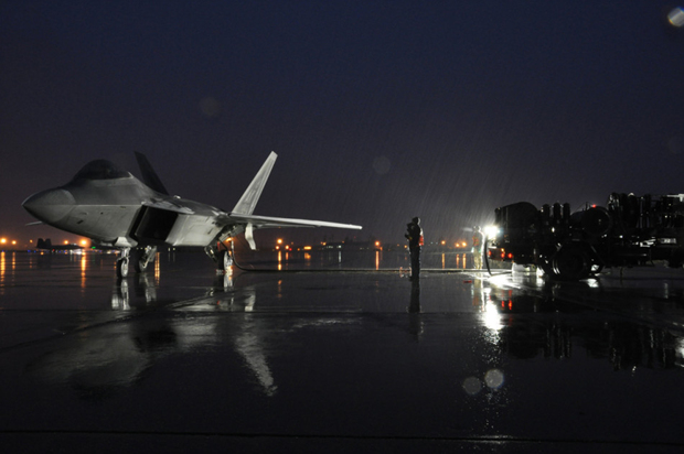 艾尔门多夫基地F-22A正在快速加油
