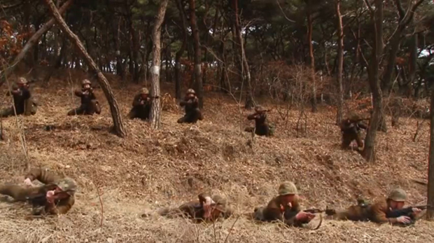 当地时间2013年3月6日,朝鲜平壤,金正日军事大学的士兵举行军演。当天,朝鲜人民军还向媒体公开了射击训练场面。