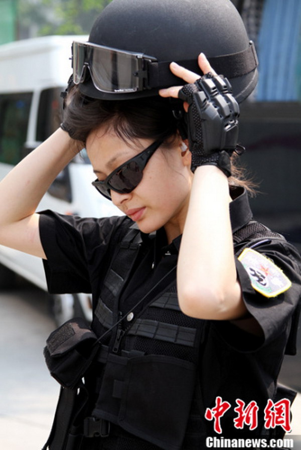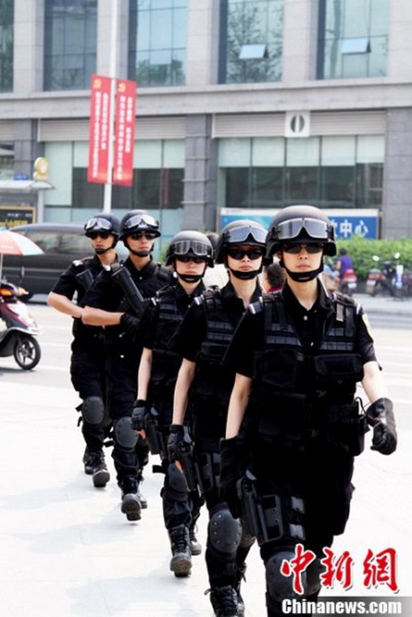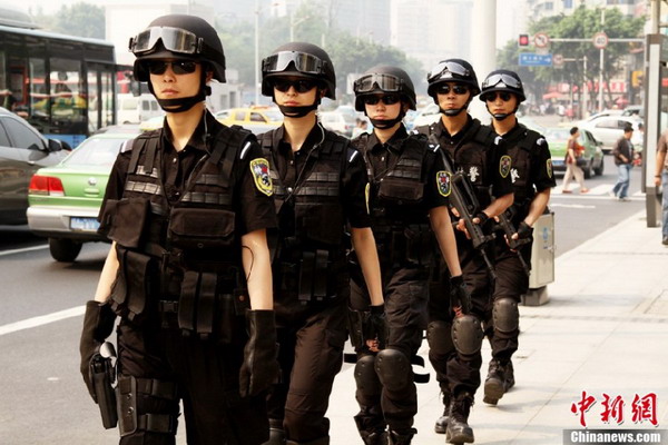 四川省第十次党代表大会的举行期间,成都市公安局特警支队严格按照勤务工作安排部署,派出精干警力负责会议安检排爆、武装巡逻和处突备勤等安保任务,在勤 务工作现场,有一道亮丽的风景线,她们就是成都特警的女子特警队员们,她们认真巡逻、细致安检和文明劝导的工作风貌,受到了参会代表和群众的高度赞扬。成 都女子特警在重点区域开展武装巡逻 。