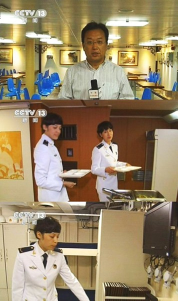 据介绍,辽宁舰上有五个餐厅,是航母生活区上最大的区域。