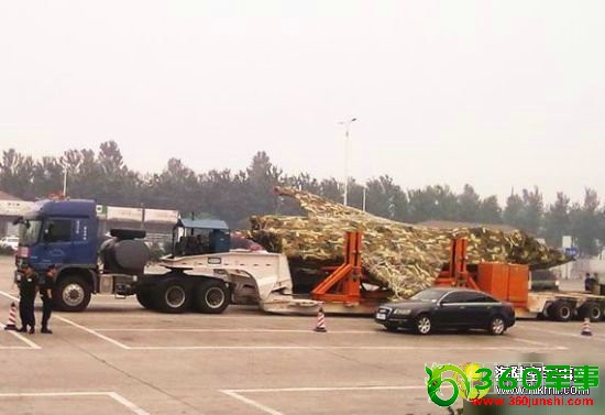 沃尔德伦说,中国的一些军事博客和军事网站近来公布了一辆卡车运载的神秘飞机。在其中一张照片中,一辆卡车显然正将飞机从沈阳飞机公司运往西安某地。而在其它被公布的照片当中,这架神秘飞机被遮盖着,毫不起眼地沿着高速公路滑行,其外形酷似已退役、被拖往博物馆或填埋场的澳大利亚皇家空军多用途战术战斗机F-111。飞机的尾翼还未安装。无论如何,这不是一架真正的飞机,只是一架即将成型飞机的大部分。